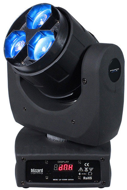 With fast pan/tilt motors, razor-sharp optics, ultra-smooth 16-bit dimming, and a narrow to wide 6.5-60 zoomable beam angle, Stiletto' Z3 fixtures are able to put on a high-energy lighting display of brightly colored moving beams in standalone, auto mode, sound active mode, or via 12/17-channel DMX modes.