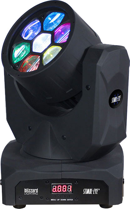 Meet the Stimul-Eye', the amazingly cool LED multi-beam moving head effect fixture that is sure to stimulate any crowd! With its 7* high output 10W CREE white LEDS and 6-color +open color wheel, Stimul-Eye' fixtures produce strong, individually controllable colored narrow beams that spread from 5-40, or gather to one powerful beam. Then, its infinite rotating lens and 540/250 pan/tilt will add a ton of motion and spectacular dynamic effects to any light show!