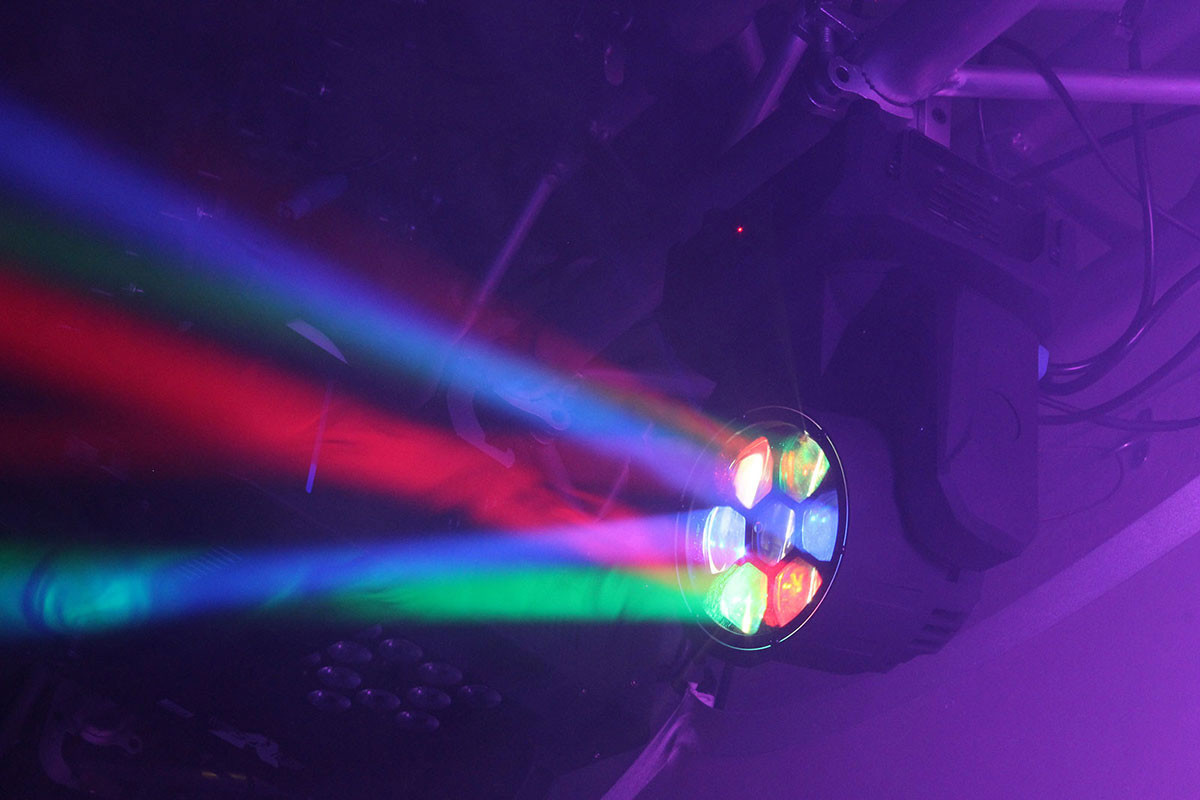 Controlling the Stimul-Eye' is easy as pie via DMX in either 12 or 19-channels mode, or by using its 4-button LED control panel, which offers complete control of every available feature including reversible pan/tilt, auto mode, sound active mode, mic sensitivity, manual pan/tilt adjustments, lens rotation, color wheel rotation, strobe, dimmer, individual static + dynamic effects, speed control, and system reset.