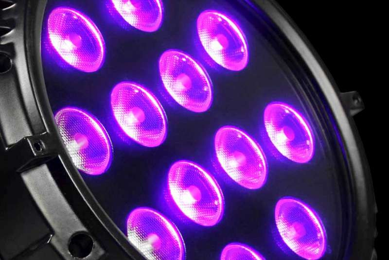 • RGBVW color mixing via 12x 15W R/G/B//W/UV 5-in-1 LEDs