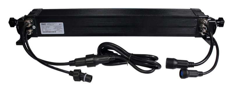 The weatherproof 4-button LED control panel found on the side of the ToughStick 5' gives users full control of all the features and settings such as full RGBAW color mixing, 35 built-in programs, strobe and speed controls, plus sound active mode. The fixture can also be controlled via DMX master/slave in either 4/5/9 or 10-channel DMX modes.