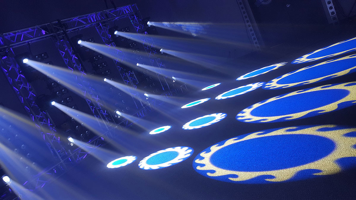 • 2 gobo wheels, 1 static/1 rotating both with 7 gobos + open