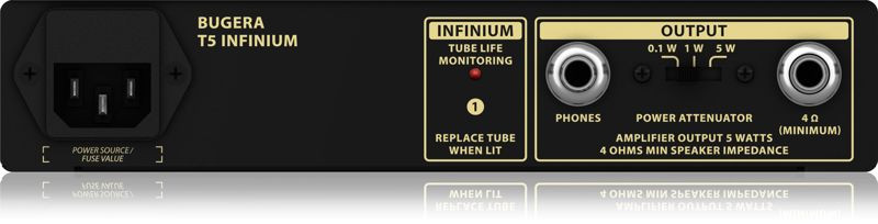 Power Attenuator and Speaker Emulation - Your Best Tone at Any VolumeThe convenient, built-in Power Attenuator allows you to operate the incredibly-tasty T5 at your choice of 5 Watts, 1 Watt, or even 0.1 of a Watt, so you get everything from sweet and sassy to maximum tube saturation at any volume level. This amazing feature alone makes the T5 INFINIUM worth its weight in gold!
