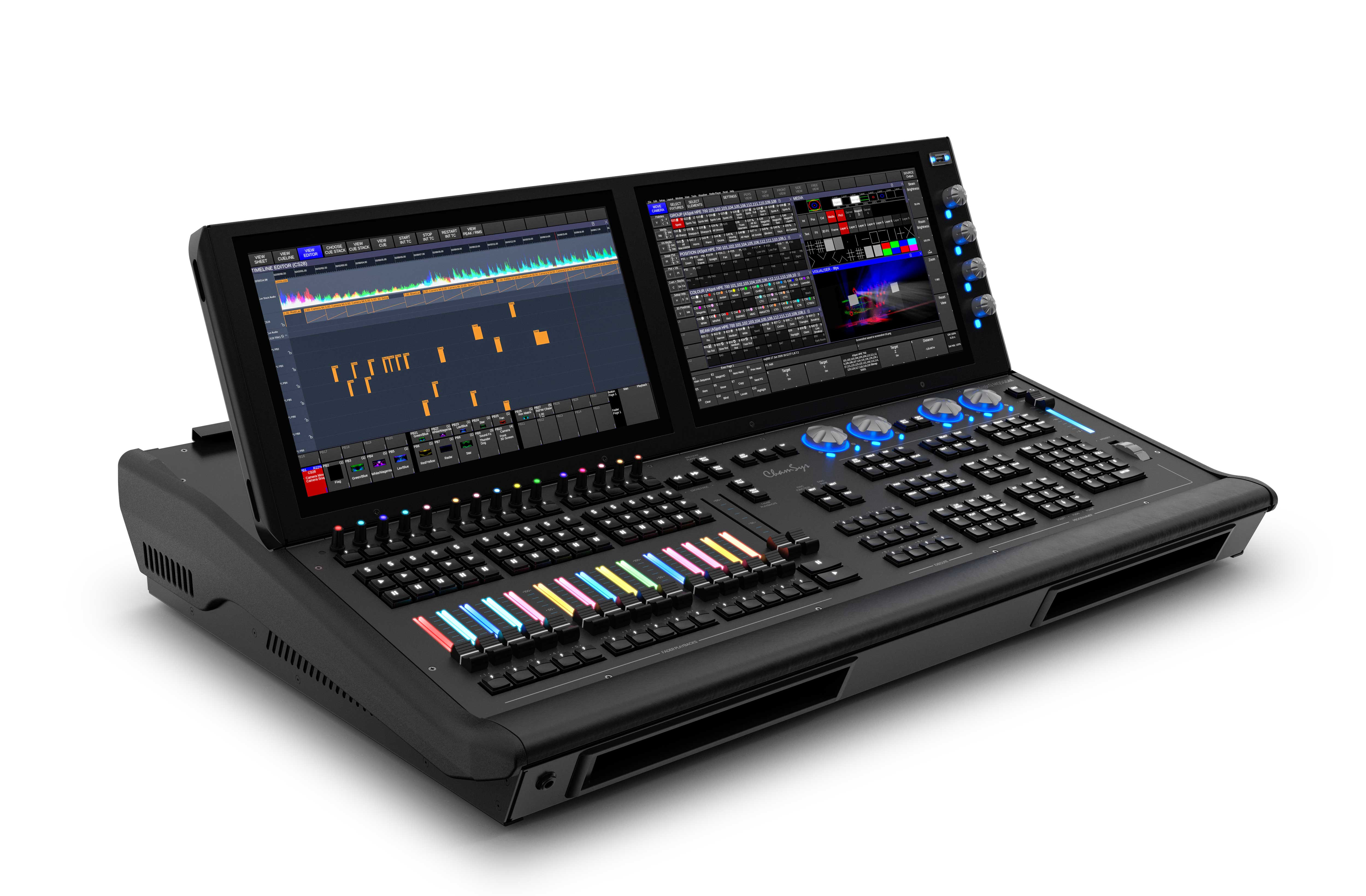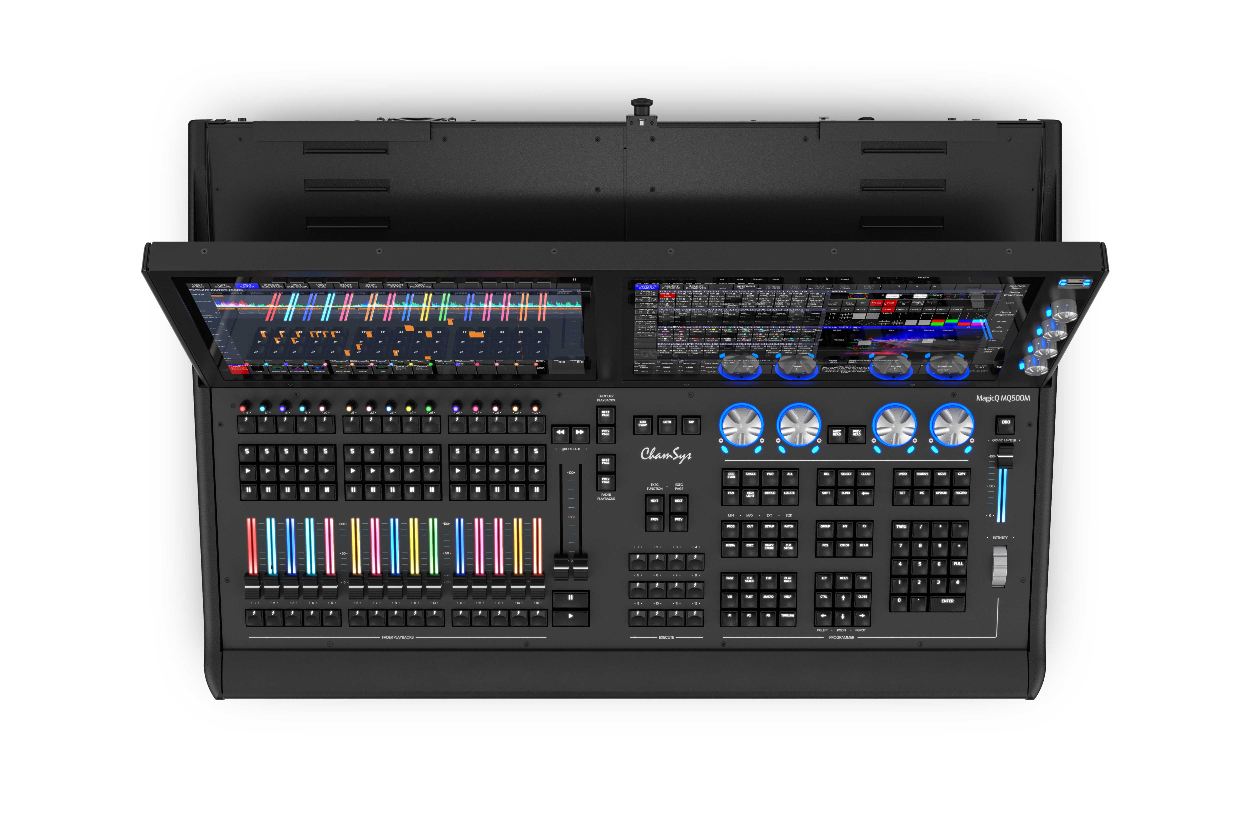 MagicQ MQ500M Stadium offers the highest level of show control, supporting 256 universes directly from the console without need for external processors. RGB illuminated, fully motorised faders and encoders provide 42 playbacks, along with backlit keys for upgraded programming. Connect MagicQ MQ500M Wing for even greater control.