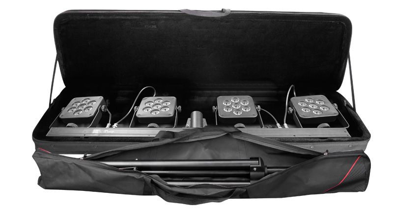 4BAR' Tri USB is a complete wash lighting solution ?tted with high-intensity tri-color (RGB) LEDs that can be controlled wirelessly via the included footswitch or the optional IRC-6 controller (sold separately). It also features D-Fi' USB compatibility for wireless master/slave or DMX control. A convenient tripod stand and carrying bag are included for quick and easy setup and tear down.