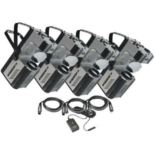 The 4-channel Intimidator 1.0 DMX-512 intelligent scanner features a combined dichroic color/gobo wheel with 14 gobos plus open and 18 colors plus white, strobing, 180 pan in .5 sec., 90 tilt in .3 sec, and Smart Link. A surface-coated mirror ensures optimum luminosity. Sound-active (standalone), master/slave, and DMX modes. Standalone mode is activated automatically when a DMX signal is absent and the Intimidator will run through its diverse range of built-in sound-active programs. Master/slave mode lets you daisy-chain as many units you want in a synchronized light show to the sound. DMX control mode gives you the greatest flexibility and creativity. Each fixture trait can be controlled individually using any universal DMX-512 controller. The Intimidator's double bracket yoke doubles as a floor stand. Bulb saver cuts off after 10 seconds.