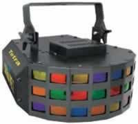 A, lightweight, radiating light will put multiple colors throughout the floor. Comes with 24 multicolored lenses. 16 patterns sound-activated, Flash, Chase, 16 patterns automatic, All on