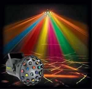 Sound-activated light with OVER 144 crisscrossing beams! 48 colored lenses provide full room coverage.