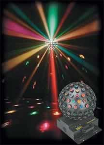 Over 100 multicolored beams! 360-degree rotation. Full room coverage.