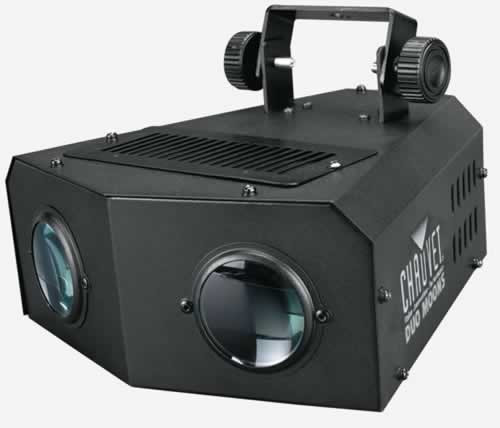 Duo Moons Multi Colored Moonflower Effect Light. One colored moonflower and one white moonflower move independently in sound-activated motions. Features preprogrammed shows and three modes: flashing independently, rotating independently, and static.