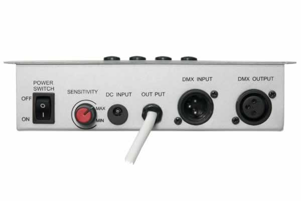 • Built-in sound activated programs via DMX (36 different color combinations)