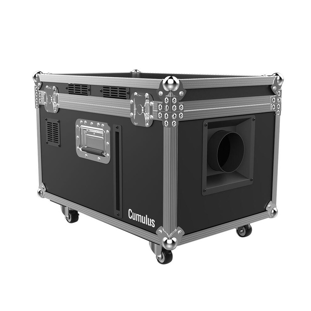 Cumulus is a professional low-lying fog machine that creates thick clouds that hug the floor without the need for dry ice. The onboard ultrasonic agitator converts distilled water into a thin mist. The unit's fast heat up time allows for quick operation and fog on demand. It's rugged flight case makes transportation a breeze and locking casters prevent accidental rollaways. Cumulus can be controlled with the on board digital display or DMX.