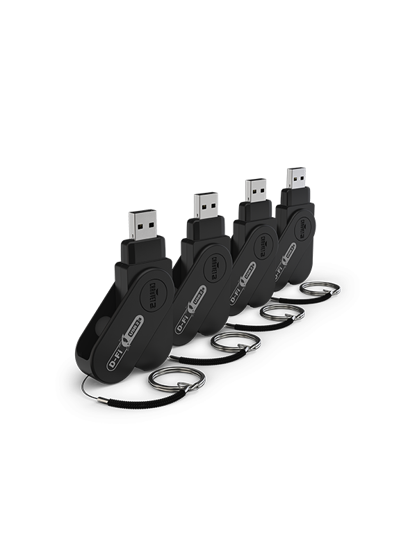 Streamline your lighting setup with a 4-pack of the improved version of our proprietary USB wireless DMX transceiver: D-Fi USB 2 X4. New LED indicators simplify channel selection. Its single-material plastic housing is sleek and ideal for signal transmission. Enjoy the convenience of wireless connection that eliminates the need for DMX cables with this handy device powered directly from your CHAUVET DJ lighting fixture's USB port. This easy-to-use D-Fi solution makes setup time a breeze.