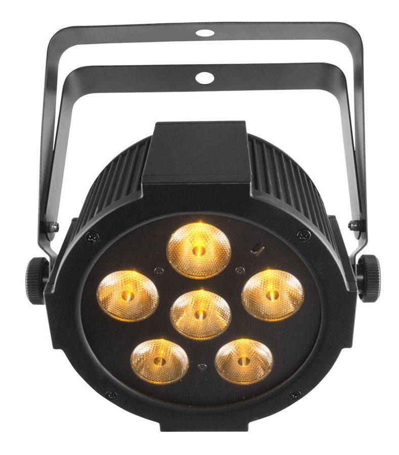 Featuring 6 quad-color LEDs SlimPAR' Q6 USB is a low-profile, high-output quad-color (RGBA) LED wash light with built-in D-Fi' USB compatibility for instant wireless connectivity. It is controllable via master/slave, DMX, standalone modes or the point-and-shoot IRC-6 remote (sold separately). It also features multiple user-configurable settings. SlimPAR' Q6 USB creates natural-looking color temperatures thanks to punchy amber LEDs. Its flicker free operation makes it well-suited for video productions. Other features include a built in gel frame holder and a gel frame. With no moving parts, the fixture is ideal for applications where silence is essential. Multiple units can be power linked to save time running cables and extension cords.