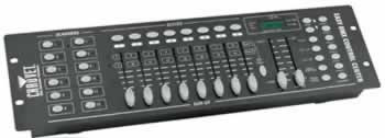 Universal DMX-512 controller holds 240 scenes, 30 banks of 8 scenes, with 6 sets of chases containing 240 scenes.