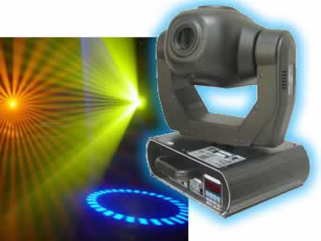 12 or 14 channel DMX-512 moving yoke spot. This light features 11 colors plus white,a rainbow color spin, idexing rotating gobos and many other essential features.