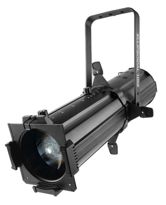 Ellipsoidal 100Z is a powerful spot fixture featuring sharp pattern projection with a 100 W warm white LED light source. This versatile fixture works with metal or glass gobos to create incredible gobo or pattern details. The manual zoom and framing shutters make it simple to control beams.