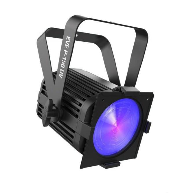 EVE P-150 UV is a brawny blacklight cannon fitted with 40 UV LEDs emitting 150 watts of blacklight power. The unit is designed without a fan and its silent operation combined with its flicker-free output make it ideal for video use.