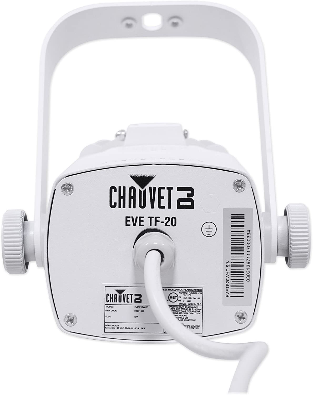 Energy efficiency and compact design are the best features of Chauvet DJ's EVE TF-20XWHT soft edge LED accent luminaire. Use it as a regular Par can or emit a classic fresnel-style lighting for stage and theatrical settings. The included barn doors let you focus light particularly where you want it. The EVE TF-20XWHT works perfectly with conventional dimmers, and creates flicker-free film production thanks to the Constant Current Reduction LED dimming. An included track adaptor makes it the perfect fresnel solution for both new and retrofit installations, yet is ready for mobile use right out of the box.