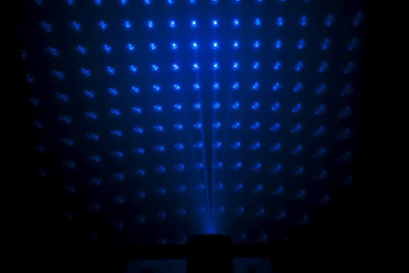 Create customized shows with independent control of red and blue laser diodes and easily generate eye-catching effects with sound-activated and automated programs. It covers a large, wide area and looks great with or without fog. Wirelessly set color and rotation speeds with the included wireless remote control.