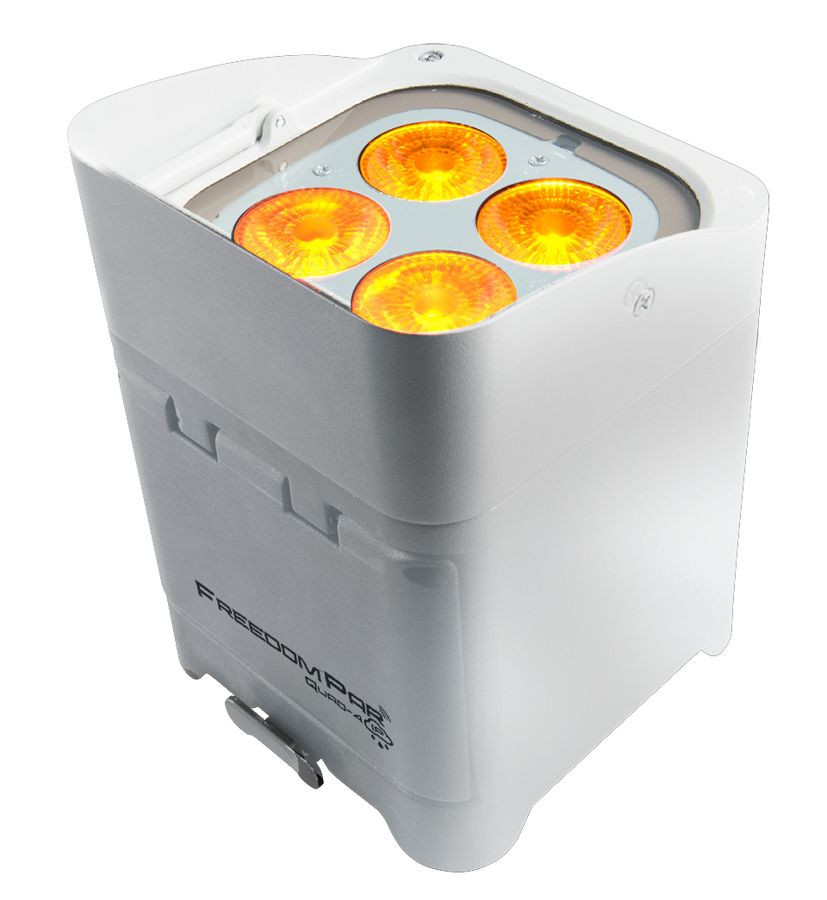 Freedom Par Quad-4 IP is a 100% TRUE wireless, battery-operated, quad-color (RGBA) LED Par with built-in D-Fi' transceiver. Its temporary outdoor-rated robust housing repels water, snow, dirt, and sand for all-weather applications. Freedom Par Quad-4 IP works in Master/Slave mode with first-generation Freedom' Pars and it has multiple wireless triggering and control options via the FlareCON' Air and the FlareCON' app.