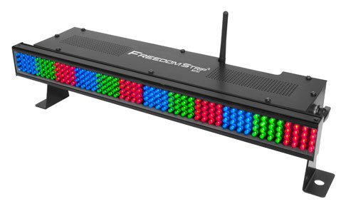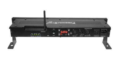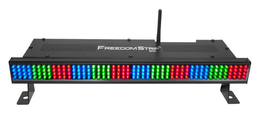 Freedom' Strip Mini takes the very popular COLORstrip' Mini and integrates battery power and D-Fi' 2.4GHz wireless DMX. A lightweight, rechargeable Li Ion battery powers the unit for up to 8 hours. When wireless DMX isn't needed, easy "point and shoot" operation is achieved with the infrared remote control (IRC). Freedom' Strip Mini works in master/slave mode with COLORstrip' and COLORstrip' Mini.