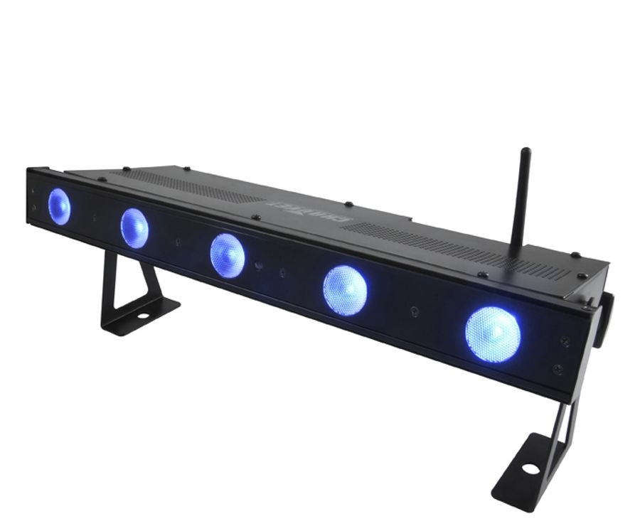 Freedom Strip Mini Quad-5 pairs the familiar linear form of the Freedom Strip and 100% true wireless operation capability with five 5-watt quad-color LEDs to produce vivid saturated colors and nearly eliminate multicolored shadows. This battery-powered wash light can be controlled via wireless DMX thanks to an integrated D-Fi 2.4 GHz system. For even easier operation when wireless DMX isn't needed, point-and-shoot operation is available using the IRC infrared remote control.