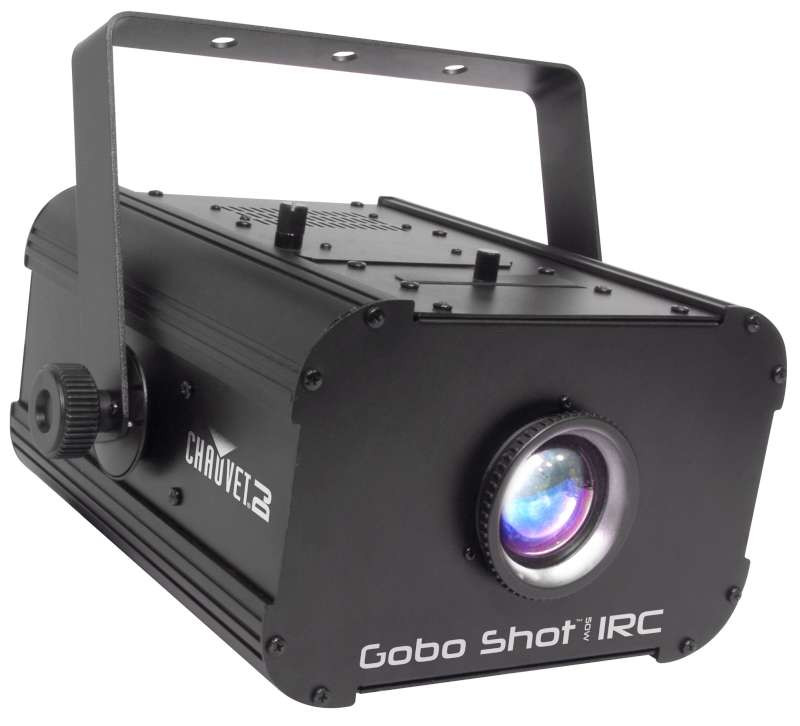 Gobo Shot 50W IRC is a powerful, DMX-controllable gobo projector powered by a 50-watt LED. It features a hinged gobo door for quick, easy gobo changes and includes 10 popular gobos and a gel frame holder. For customized looks, easy to change, size D gobos allow for greater projected details. Heat-free LED power allows for use of custom gobos printed on transparency film. Use the built-in digital display or optional IRC remote to control the dimmer function as well as gobo rotation and direction. Gobo Shot' 50W IRC fits best in the optional CHS-40 VIP Gear Bag for secure and convenient transportation.