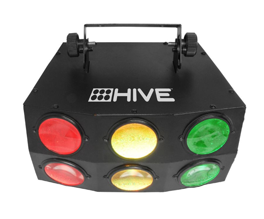 Hive emits bold, multicolored beams to give any mobile application that "rock star" look. High-power red, green and blue LEDs emit tight, concentrated beams from six fixed-angle lenses. Create customized looks in DMX mode, or allow built-in, automated and sound-active programs to work the show. Pair it with a fog or haze machine to create eye-catching, mid-air effects.