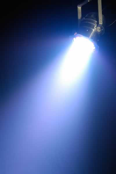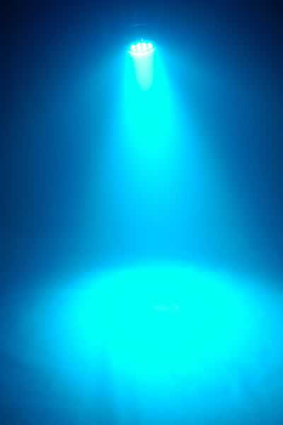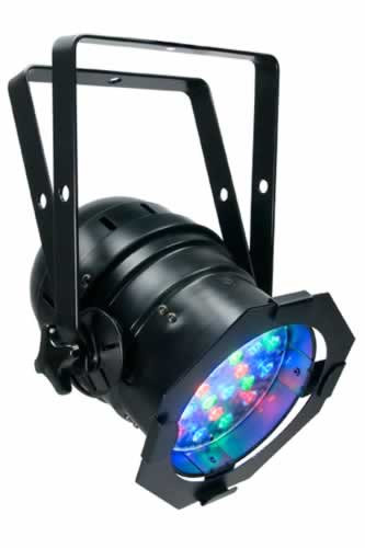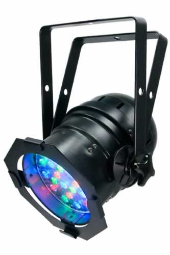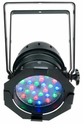 LED PAR 56-24B features high-power color mixing with 24 red, green and blue LEDs and responds to 7 channels of DMX control. It produces a bright, narrow beam that cuts through fog and is ideal when a concentrated light is needed.