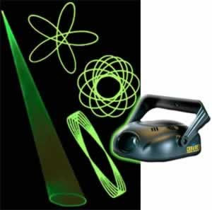 4.9mW green laser with 24 2D geometric patterns , 24 3D geometric patterns, and 3 modes of operation (Audio, Auto and Manual). Comes with AC adapter and mounting bracket.