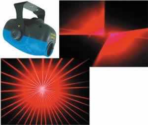 Red laser responds to sounds with rolling, scanning, and tunnel effects in all directions. 32 geometric patterns in different sizes. Powers down automatically when music stops.
