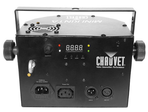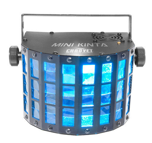 Fitted with 3W LEDs to punch through nearly any ambient lighting, Mini Kinta' fills the room with sharp beams and features more output and broader coverage than derby effects twice its size. Floor-to-ceiling and wall-to-wall coverage is effortless with red, green, blue and white effects. Let the built-in programs do the work or use DMX to program your own light show.