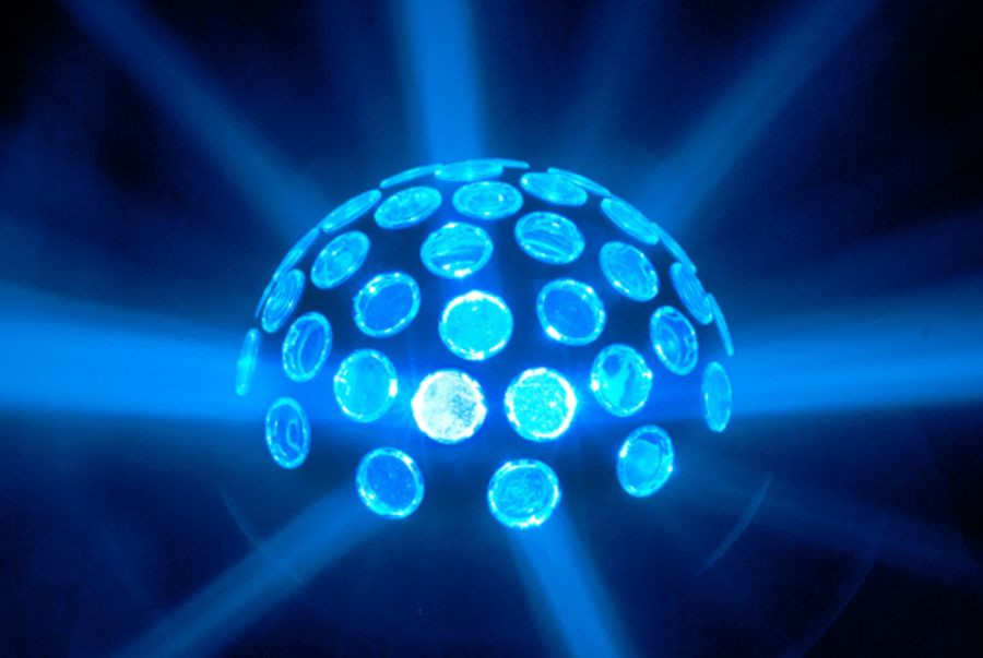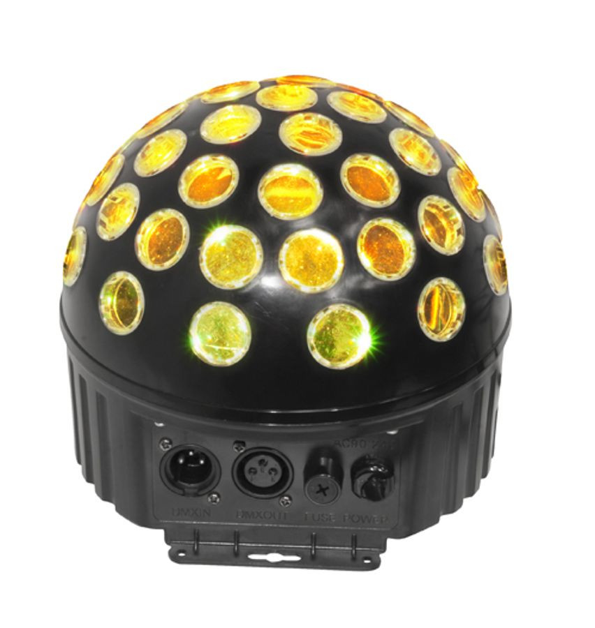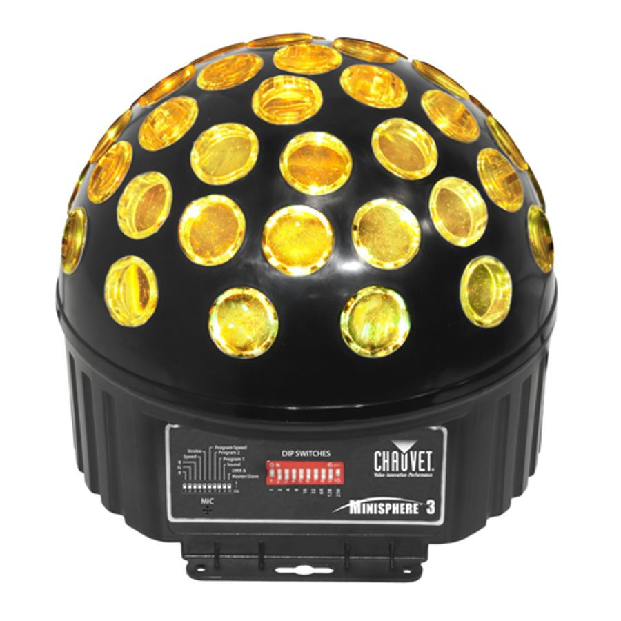 Minisphere' 3.1 is a bright, compact and lightweight effect light that features three 3-watt LEDs: one red, one green and one blue. The rotating and strobing LEDs create a dynamic and festive atmosphere. Minisphere' 3.1 has built-in and sound-activated programs and can be used with or without a controller via built-in automated programs or DMX.