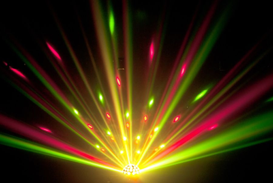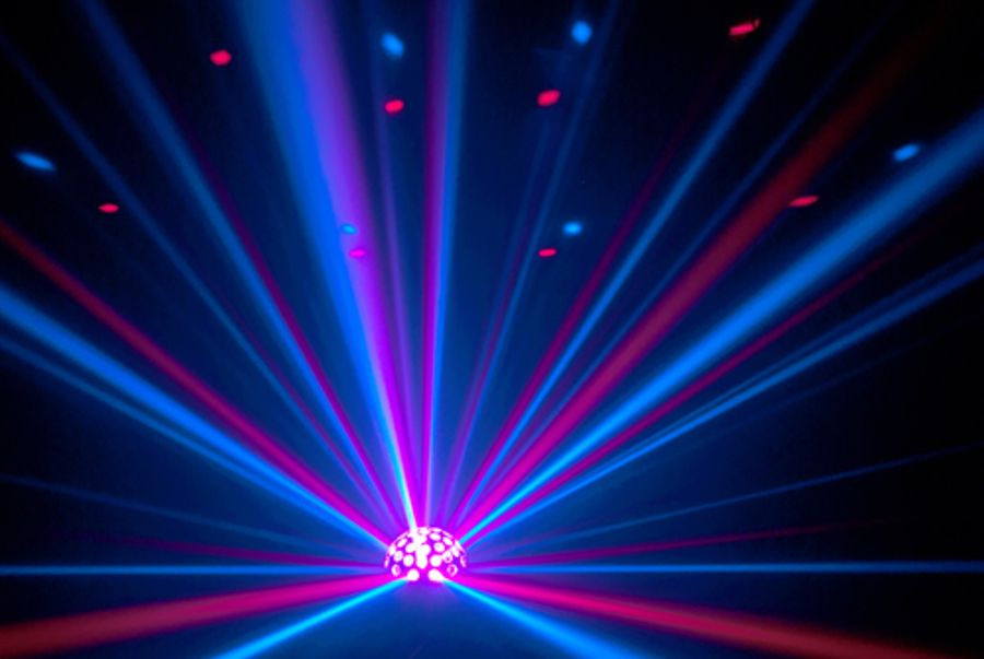• Red, green and blue rotating and strobing LEDs create a festive atmosphere
