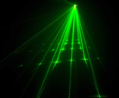 FEATURES: • Pint-sized green star and red beam laser projector for use in small parties that need big coverage