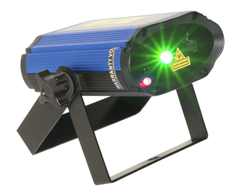 MiN' Laser RGX 2.0 is an ultra-compact, plug-and-play laser. The unit features a sleek, stylish housing and projects different red and green laser effects onto any surface. Two convenient mounting stands (with easy clamp mounting ability) and an infrared remote control are included to make set up and operation a breeze.