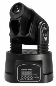 ADDITIONAL FEATURES: • Built-in automated programs via master/slave (fast and slow) • Built-in sound activated programs via master/slave • User-selectable basic or advanced operating modes • User-selectable pan/tilt ranges Pan: 540, 360, 180 Tilt: 270, 180, 90 • Compact and lightweight • LED display with on, off, auto settings • Reset to factory settings option • Pan/tilt invert option • Fan cooled