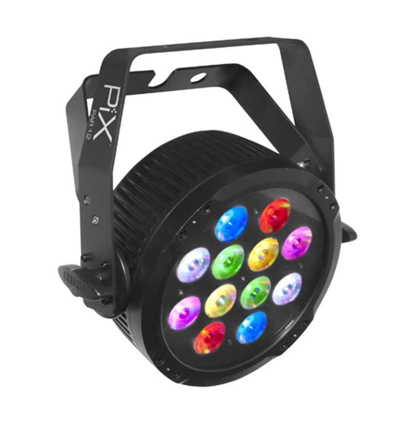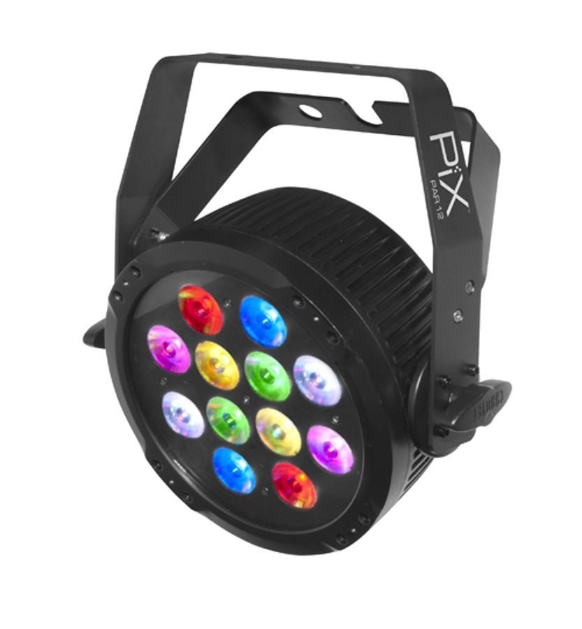 Great for use as a standard PAR with the additional eye candy of pixel mapping effects, PiXPar' 12 is a must-have fixture for mobile DJs or club installers looking for high-impact visuals on a budget. This compact, pixel mapping PAR can-style wash light is equipped with built-in, eye catching effect macros. Powered by 12 individually controllable tri-colored LEDs to create elaborate animations and video effects. Super-smooth LED fading and flicker-free output make it an ideal fixture for events being videotaped.