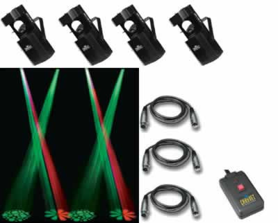 4-channel DMX-512 luminaire with Built-in beat-activated programs Automatically enters stand alone when no DMX signal is present set will also include a blackout controller and 3-pin XLR cable