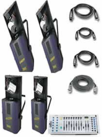 Perfect for Mobile DJs or bands! The Freedom Package gives you the choice of the lights you want in your package! Choose 4 pieces in any combination, of the Intimidator or Insignia , plus you get the DMX-40 Controller and all necessary cables!
