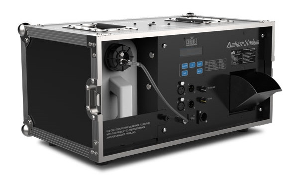 Amhaze Stadium is a tour-ready professional water-based haze machine ideal for large-scale applications. With an output of 14,000 cfm, the Amhaze Stadium boasts an impressive 30-second heat-up time. It also features a durable, low-profile road case to survive the rigors of touring and production. The output and speed of haze can be easily adjusted via DMX or the LCD screen, and the unit comes equipped with an M12 threaded insert for hanging.