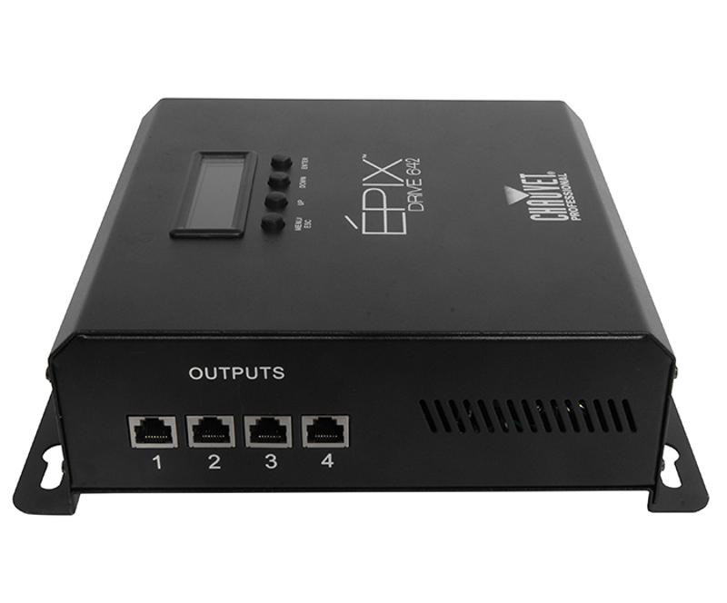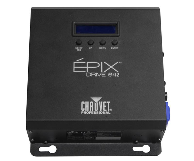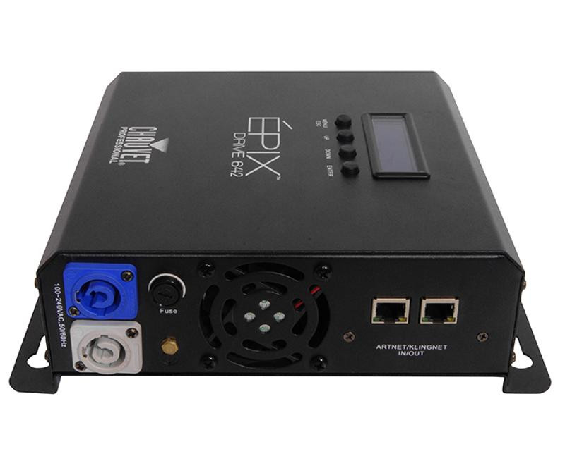 PIX' Drive 642 hosts the processing and power supply for the EPIX' 2.0 product line in one convenient device. It controls up to 16 PIX' Strip 2.0 or 4 PIX' Bar 2.0 easily using Art-Net (3.0 compliant) or Arkaos Kling-Net. Configuration and setup is fast, easy with its built-in LCD display. Additionally, you can manage configuration and software updates with a network-based remote web server.