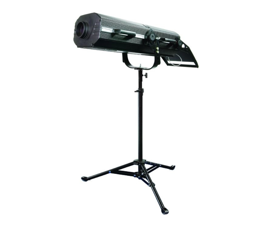 Followspot 1200 is a 1,200-watt follow spot easily controlled through an on-board panel or six channels of DMX. It features eight dichroic colors, a variable electronic dimmer, variable mechanical iris, and variable mechanical focus. It comes with a tripod that keeps it steady on uneven surfaces, and a sturdy road case.