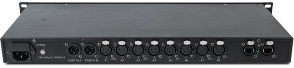 • Two 5-pin XLR inputs and eight 5-pin XLR outputs, all optically isolated