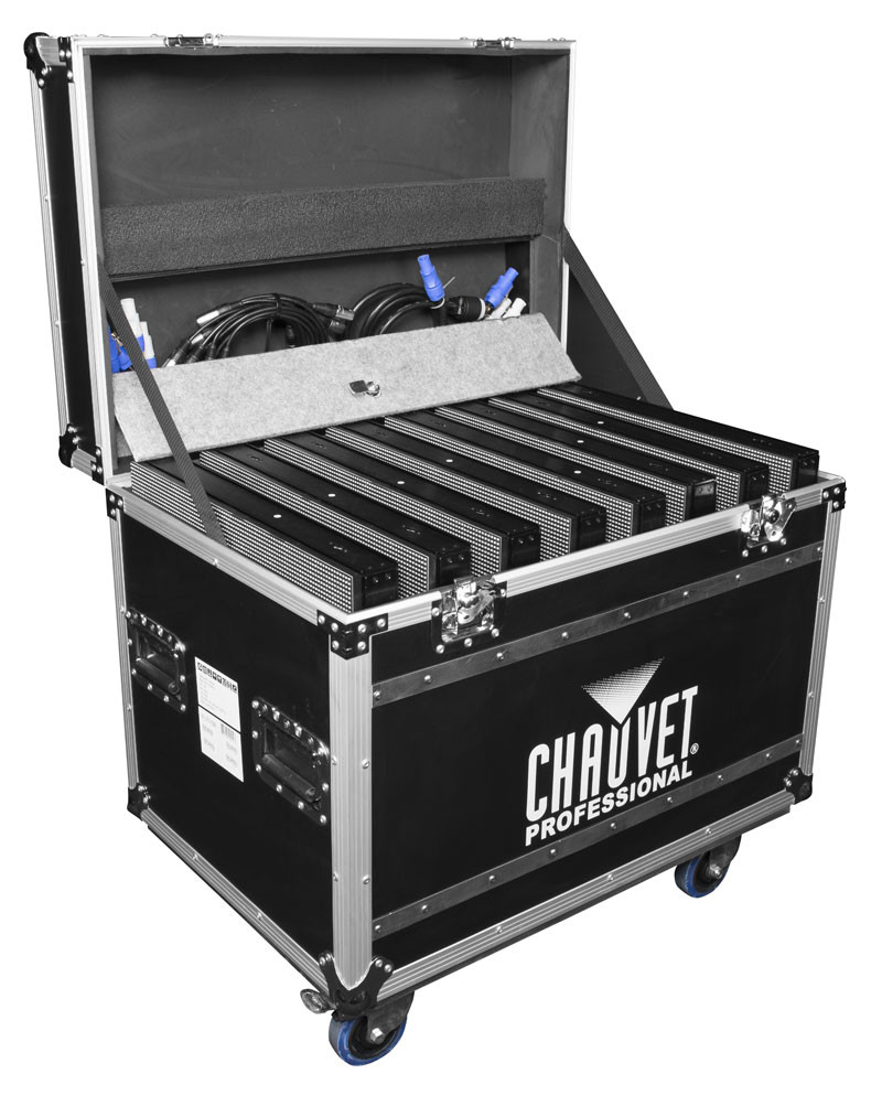 Measuring approximately 8 feet wide by 5 feet high, this pre-configured video wall package utilizes (15) high-res PVP S5 panels (plus 1 additional backup) and includes a VIP Driver, as well as all necessary powerCON linking cables, etherCON linking cables, rigging kits to properly hang the wall, as well as road cases to house/protect the video wall panels.