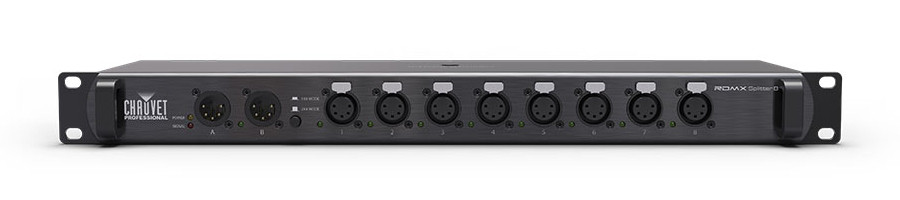 Features• Universal RDM E1.20 compliant 5-pin DMX opto-splitter that supports either 1x8 (single universe) or 2x4 (dual universes) modes with the press of a button; or functions as a 2x4 A/B splitter