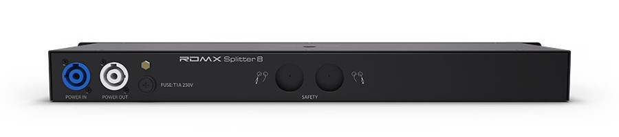RDMX Splitter 8 is a versatile RDM and 5-pin DMX opto-splitter with a rugged, durable housing. It features 8 outputs and 2 inputs, so it can instantly go from a 18 splitter to a 24 splitter for two different universes. To simplify installation next to existing fixtures, PowerCON power linking is also supported to make it easier than ever to isolate, amplify and split a signal. For added versatility, the unit can be either rack or trust-mounted and supports electrical isolation between inputs and outputs up to 1000 V between ports.