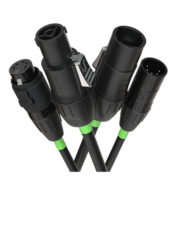 The Riglink 25' TR1 DMX Combo IP Cable from Chauvet Professional is an IP65-rated combo power and data cable designed for reliable DMX lighting signal transmission and safe connections with Seetronic production-grade connectors.