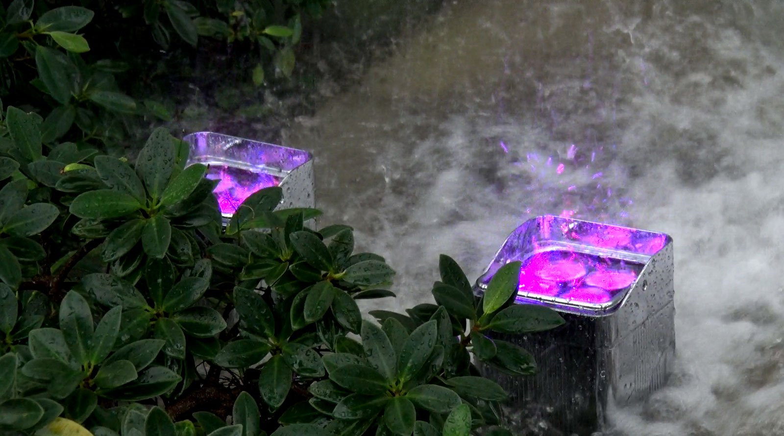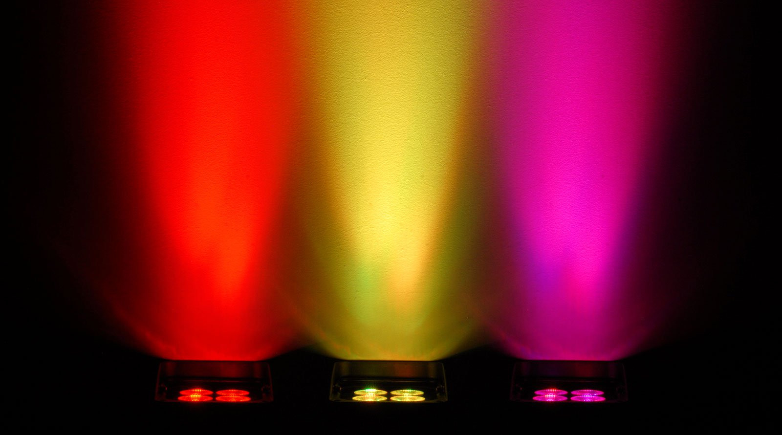 FEATURES: • A completely wireless IP65 rated battery powered up-light with four high powered quad colored RGBA LEDs that is controlled by W-DMX or IR remote.